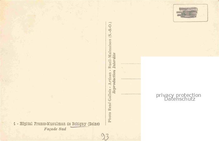 14113129 Bobigny 93 Seine-Saint-Denis Hôpital Franco-Musulman facade sud postalisch nicht gelaufen Erhaltung siehe scans [FriedD77] Frie Katcode 11170093193008