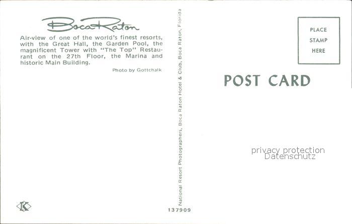 72060388 Boca Raton Great Hall Garden Pool Tower Marina Historic Main Building aerial view postalisch nicht gelaufen Erhaltung siehe scans KatCode: 14140110000000