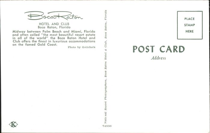 11491427 Boca Raton Hotel and Club postalisch nicht gelaufen Erhaltung siehe scans KatCode: 14140110000000