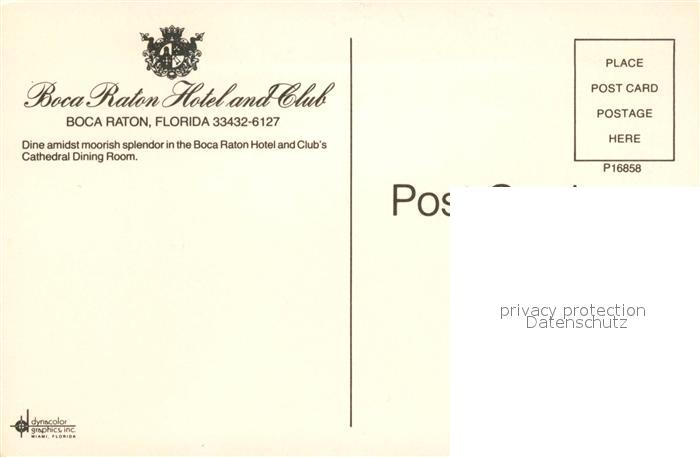 73130917 Boca Raton Hotel and Club Restaurant postalisch nicht gelaufen Erhaltung siehe scans [FriedD77] KatCode: 14140110000000