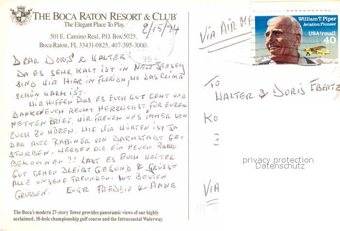 72852063 old postcard Boca Raton Resort Club postalisch gelaufen Erhaltung siehe scans [NatalD47] KatCode: 14140110000000