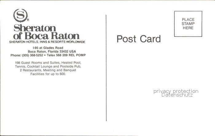 72060389 Boca Raton Sheraton Hotel Restaurant Swimming Pool postalisch nicht gelaufen Erhaltung siehe scans KatCode: 14140110000000