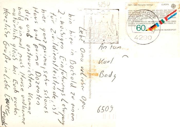 73943891 alte Postkarte Bocholt Westfalen Kirche Rathaus Osterstrasse Fussgaengerzone Schloss Aa-See Stadtwald Park postalisch gelaufen Erhaltung siehe scans [FriedD77] KatCode: 11110005554008
