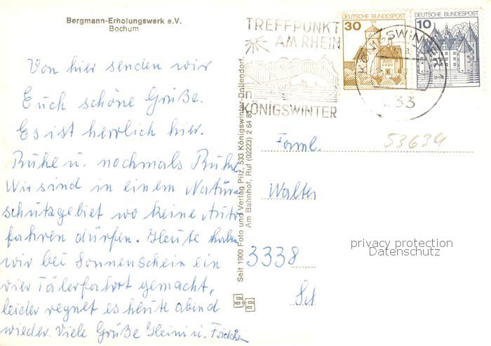 73865677 BOCHUM CITY Bergmann Erholungswerk e.V. postalisch gelaufen Erhaltung siehe scans [FriedD77] alte Postkarte Frie Katcode 11110005911000