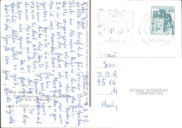 72025242 alte Postkarte BOCHUM CITY Bongardstrasse Der Kuhhirte Rathaus postalisch gelaufen Erhaltung siehe scans KatCode: 11110005911000