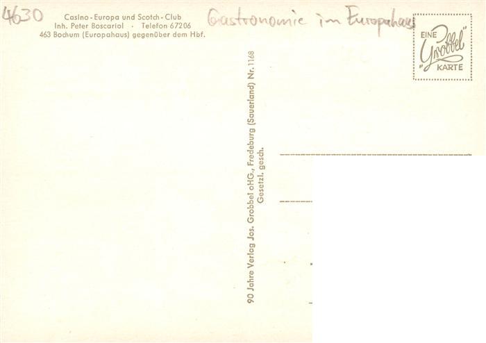 73896066 BOCHUM CITY Casino Europa und Scotch Glub Gastraeume postalisch nicht gelaufen Erhaltung siehe scans [FriedD77] Frie Katcode 11110005911000