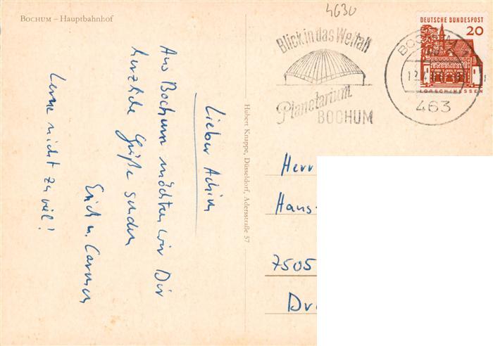 73936332 BOCHUM CITY Hauptbahnhof postalisch gelaufen Erhaltung siehe scans [WerneD78] alte Postkarte Wern Katcode 11110005911000