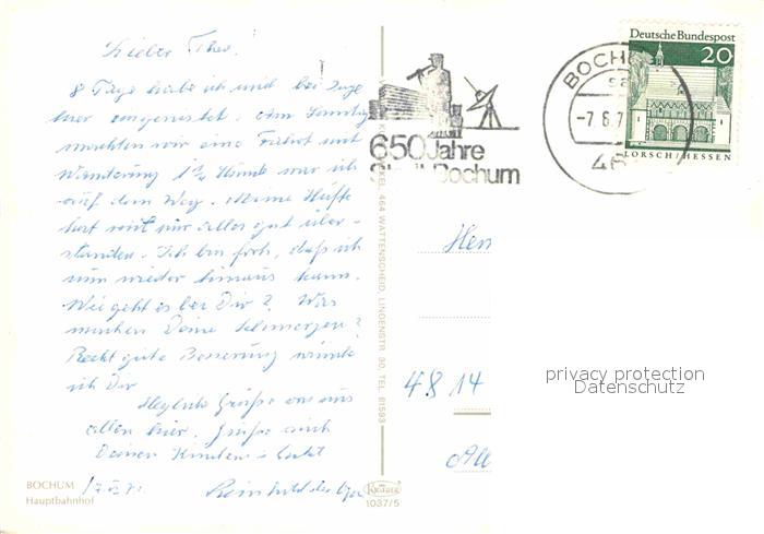 72687152 alte Postkarte BOCHUM CITY Hauptbahnhof postalisch gelaufen Erhaltung siehe scans [WerneD78] KatCode: 11110005911000