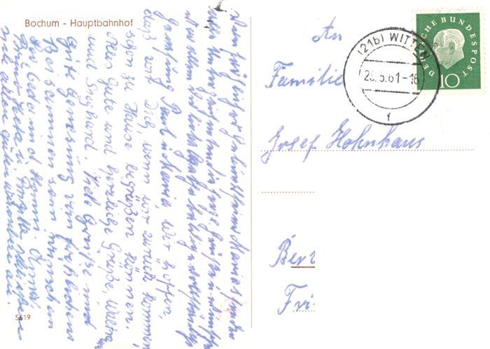 73875465 BOCHUM CITY Hauptbahnhof postalisch gelaufen Erhaltung siehe scans [FriedD77] alte Postkarte Frie Katcode 11110005911000