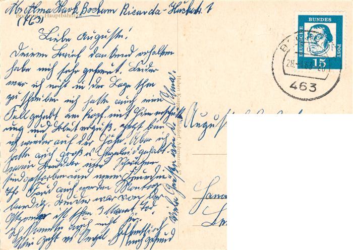 73879328 BOCHUM CITY Hauptbahnhof postalisch gelaufen Erhaltung siehe scans [FriedD77] alte Postkarte Frie Katcode 11110005911000