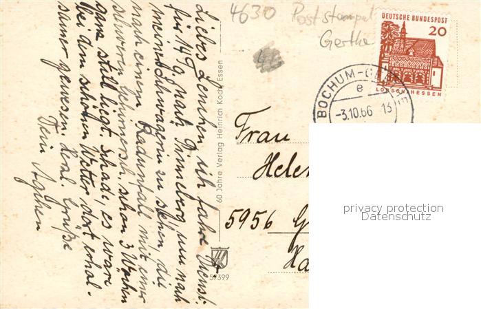 73691554 BOCHUM CITY Hauptbahnhof Details postalisch gelaufen Erhaltung siehe scans [WerneD78] alte Postkarte Wern Katcode 11110005911000