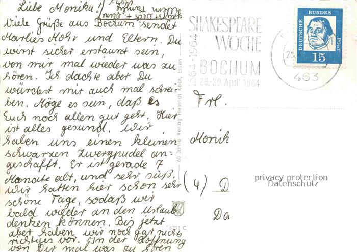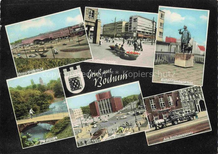 74124371 alte Postkarte BOCHUM CITY Hauptbahnhof Rathausplatz Kuhhirtendenkmal Stadtpark Staedt Schauspielhalle Am Rathausplatz postalisch gelaufen Erhaltung siehe scans [WerneD78] KatCode: 11110005911000