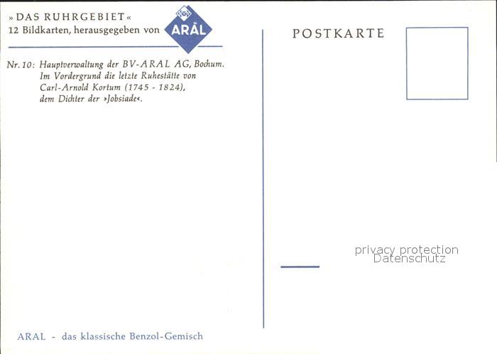 72131624 BOCHUM CITY Hauptverwaltung Aral postalisch nicht gelaufen Erhaltung siehe scans KatCode: 11110005911000