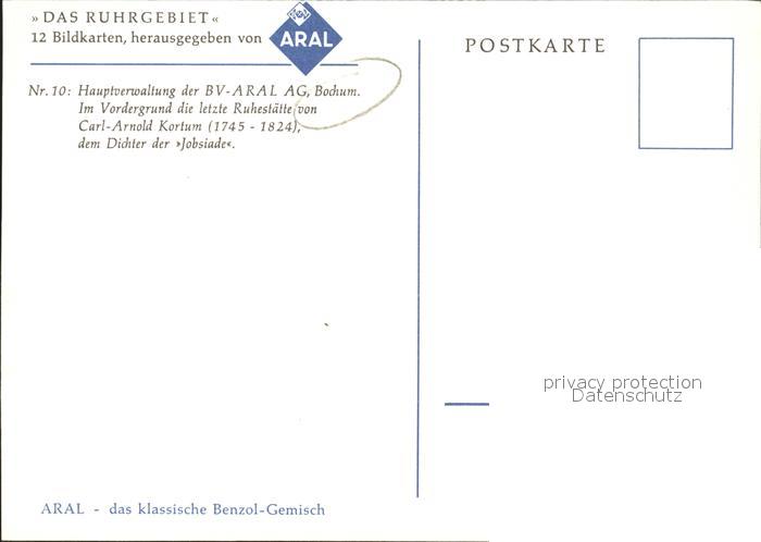 72230627 BOCHUM CITY Hauptverwaltung BV ARAL AG letzte Ruhestaette Carl-Arnold Kortum postalisch nicht gelaufen Erhaltung siehe scans KatCode: 11110005911000