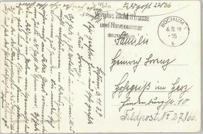 40254527 BOCHUM CITY Haus Rechen postalisch gelaufen Alte Ansichtskarte Postkarte alte Postkarte Katcode 11110005911000
