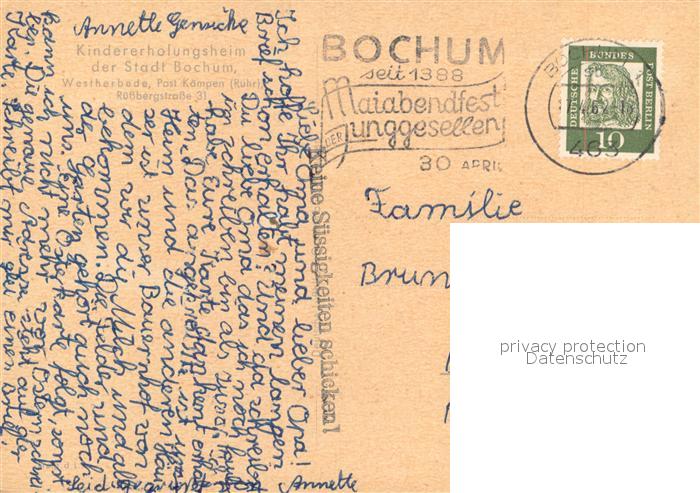 33659482 BOCHUM CITY Kindererholungsheim der Stadt Bochum postalisch gelaufen Erhaltung siehe scans [WerneD78] alte Postkarte Wern Katcode 11110005911000