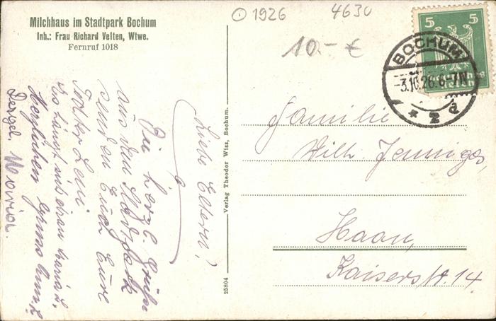 41315802 BOCHUM CITY Milchhaus im Stadtpark postalisch gelaufen Alte Ansichtskarte Postkarte alte Postkarte hz_W Katcode 11110005911000