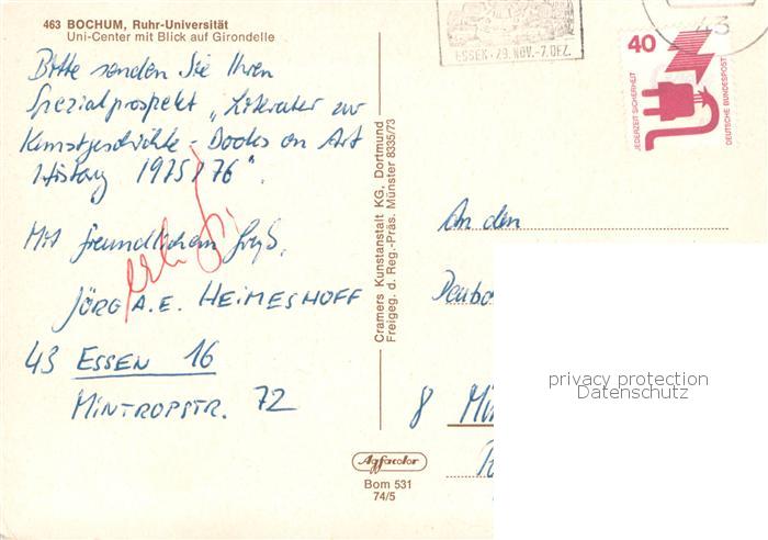 73780531 BOCHUM CITY Ruhr-Universitaet Uni-Center mit Blick auf Girondelle postalisch gelaufen Fliegeraufnahme Erhaltung siehe scans [FriedD77] Fliegeraufnahme alte Postkarte Frie Katcode 11110005911000