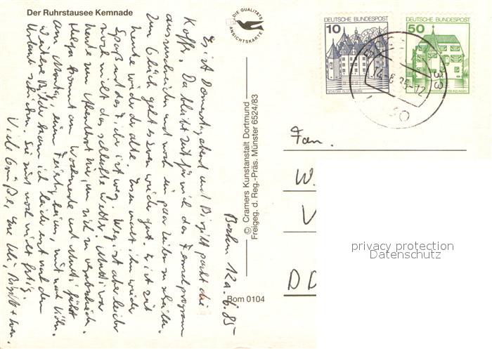 73718706 BOCHUM CITY Ruhrstausee Kemnade Fliegeraufnahme postalisch gelaufen Erhaltung siehe scans [WerneD78] alte Postkarte Wern Katcode 11110005911000