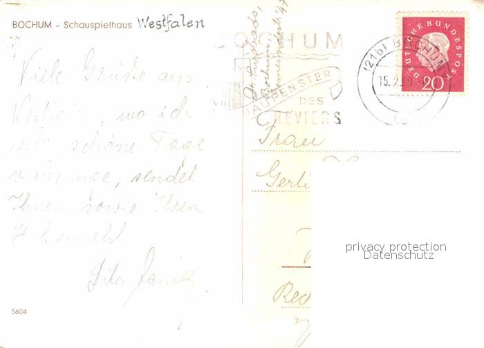 72688150 alte Postkarte BOCHUM CITY Schauspielhaus postalisch gelaufen Erhaltung siehe scans [FriedD77] KatCode: 11110005911000