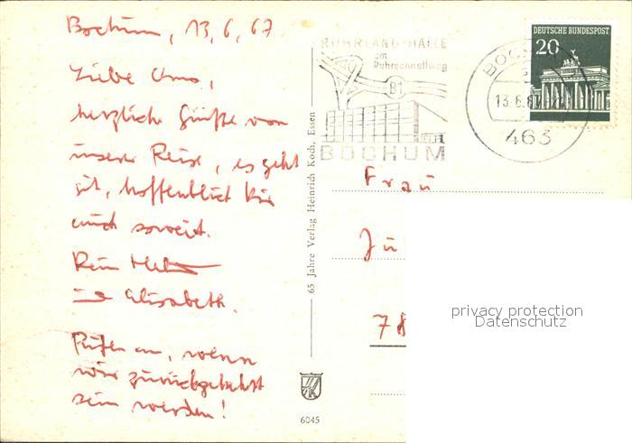 72047006 alte Postkarte BOCHUM CITY Stadtpark Hauptbahnhof Staedt Schauspielhaus Viktoriastrasse postalisch gelaufen Erhaltung siehe scans KatCode: 11110005911000