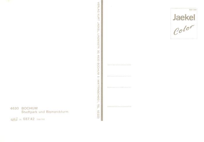 73909384 BOCHUM CITY Stadtpark und Bismarckturm postalisch nicht gelaufen Erhaltung siehe scans [WerneD78] Wern Katcode 11110005911000