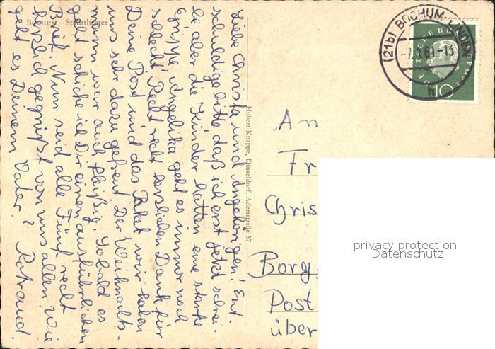 72292988 alte Postkarte BOCHUM CITY Stadttheater postalisch gelaufen Erhaltung siehe scans KatCode: 11110005911000