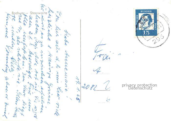 BOCHUM CITY Sternwarte postalisch gelaufen Erhaltung siehe scans [FriedD77] alte Postkarte Frie Katcode 11110005911000