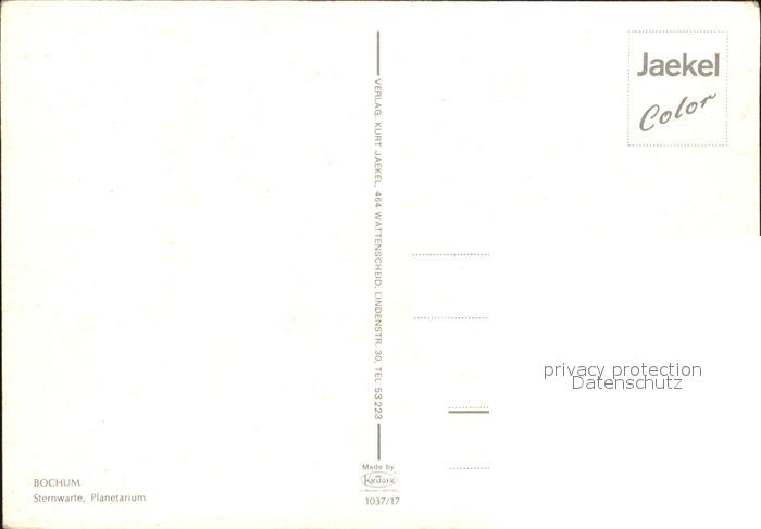 72528234 BOCHUM CITY Sternwarte Planetarium postalisch nicht gelaufen Erhaltung siehe scans KatCode: 11110005911000