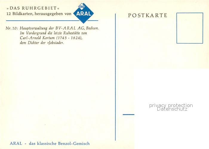 73145047 Bochum Hauptverwaltung der BV Aral AG Grabstaette Carl Arnold Kortum Serie Das Ruhrgebiet 12 Bildkarten von Aral Nr 10 Kuenstlerkarte postalisch nicht gelaufen Erhaltung siehe scans [FriedD77] KatCode: 11110005911000