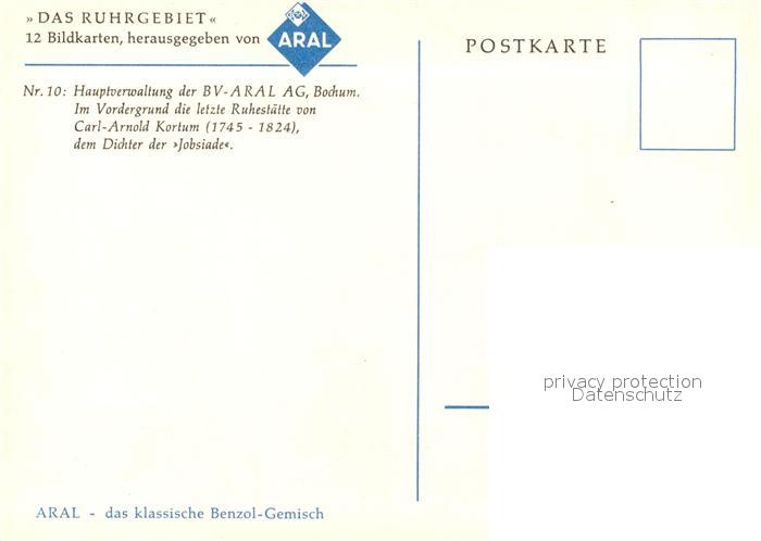 73145045 Bochum Hauptverwaltung der VA Aral AG Grabstaette Carl Arnold Kortum Serie Das Ruhrgebiet 12 Bildkarten von Aral Nr 10 Kuenstlerkarte postalisch nicht gelaufen Erhaltung siehe scans [FriedD77] KatCode: 11110005911000