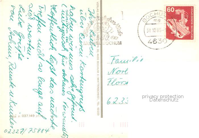 73259979 alte Postkarte Bochum St. Peter Paul Bergbau-Museum Fussgaengerzone Hauptbahnhof postalisch gelaufen Erhaltung siehe scans [NatalD47] KatCode: 11110005911000