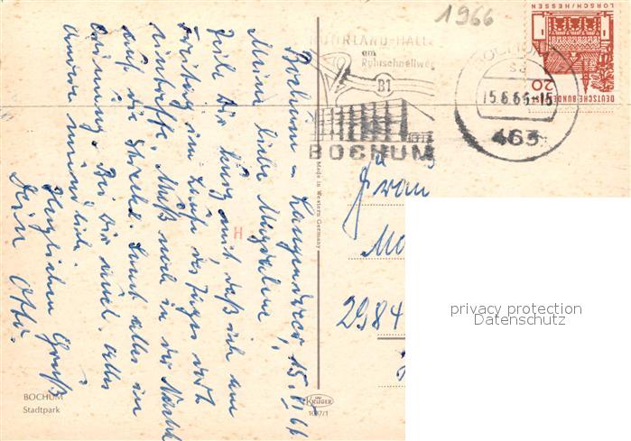 72925482 alte Postkarte Bochum Stadtpark postalisch gelaufen Erhaltung siehe scans [NatalD47] KatCode: 11110005911000