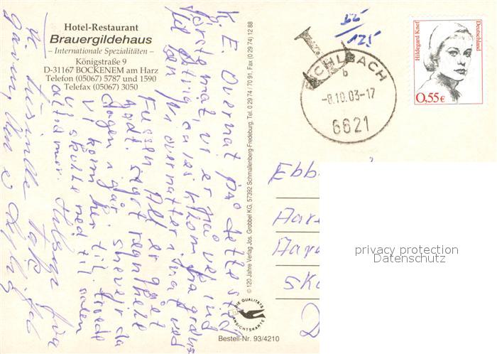 73635767 alte Postkarte Bockenem Hotel Restaurant Brauergildehaus postalisch gelaufen Erhaltung siehe scans [WerneD78] KatCode: 11110003254008