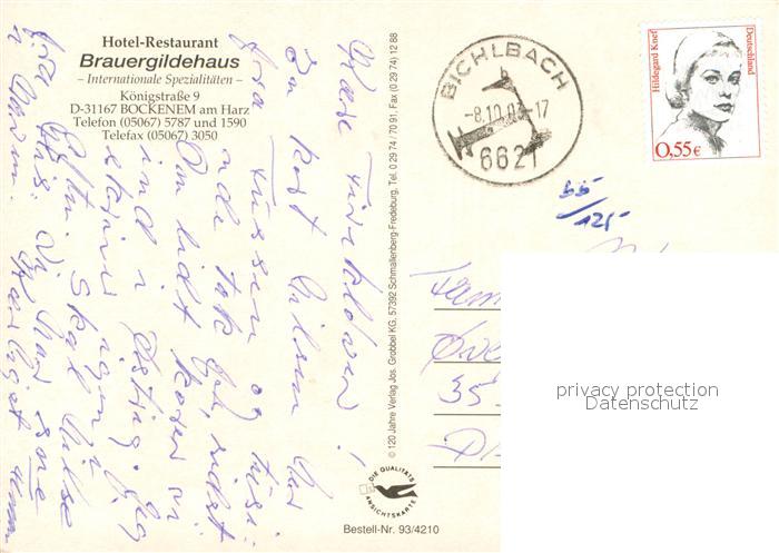 73635928 alte Postkarte Bockenem Hotel Restaurant Brauergildenhaus Karikatur postalisch gelaufen Erhaltung siehe scans [FriedD77] KatCode: 11110003254008
