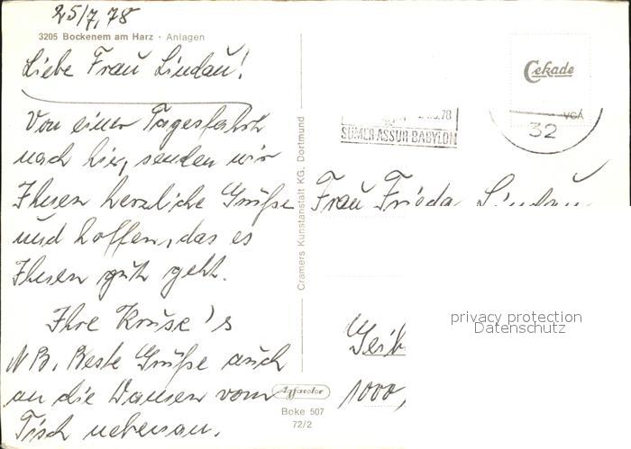 72557178 alte Postkarte Bockenem Parkanlagen postalisch gelaufen Erhaltung siehe scans [KathaD79] KatCode: 11110003254008