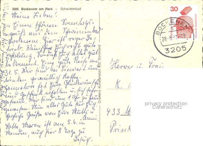 72023192 alte Postkarte Bockenem Schwimmbad postalisch gelaufen Erhaltung siehe scans KatCode: 11110003254008