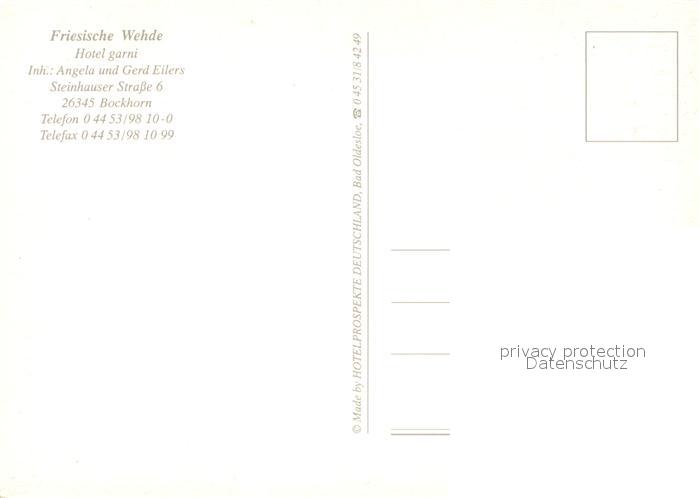 73642712 Bockhorn Friesland Hotel Garni Friesische Wehde Empfang postalisch nicht gelaufen Erhaltung siehe scans [FriedD77] KatCode: 11110003455025