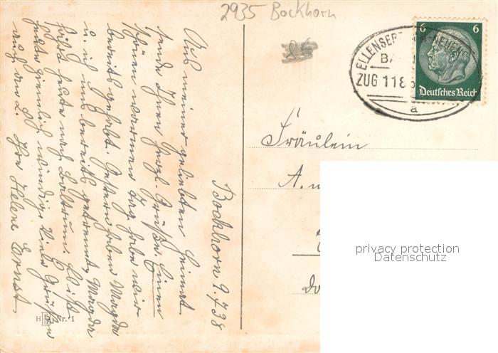 73695429 alte Postkarte Bockhorn Friesland Jagdhuette im Urwald friesische Wede postalisch gelaufen Bahnpost Erhaltung siehe scans [FriedD77] KatCode: 11110003455025