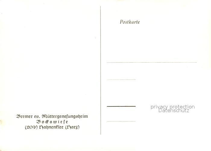 73144619 Bockswiese-Hahnenklee Harz Bremer Ev. Muettergenesungsheim postalisch nicht gelaufen Erhaltung siehe scans [NatalD47] KatCode: 11110003153005