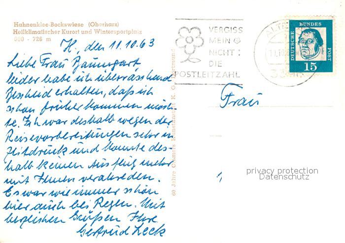 73128424 alte Postkarte Bockswiese-Hahnenklee Harz postalisch gelaufen Erhaltung siehe scans [NatalD47] KatCode: 11110003153005
