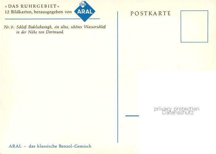 73145043 Bodelschwingh Wasserschloss Serie Das Ruhrgebiet 12 Bildkarten von Aral Nr 9 Kuenstlerkarte postalisch nicht gelaufen Erhaltung siehe scans [FriedD77] KatCode: 11110005913000