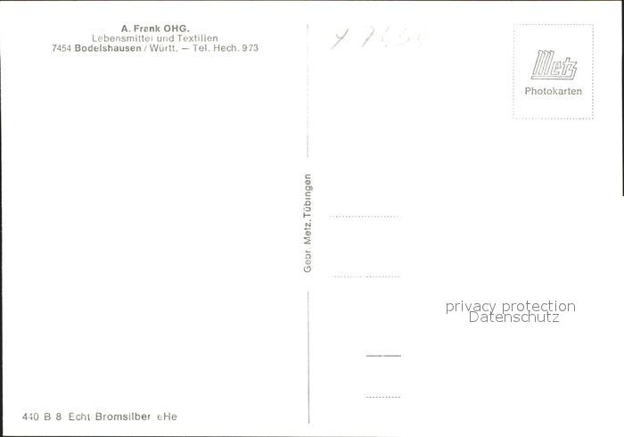 41760755 Bodelshausen Lebensmittel- und Textilhaus Frank postalisch nicht gelaufen KatCode: 11110008416006