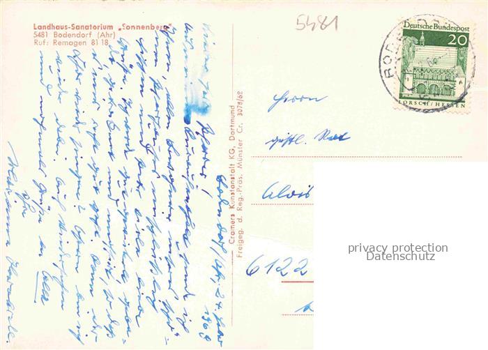 74035903 alte Postkarte Bodendorf Ahr Sinzig Fliegeraufnahme Landhaus Sanatorium Sonnenberg postalisch gelaufen Erhaltung siehe scans [WerneD78] KatCode: 11110007131077