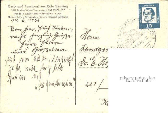 32187130 alte Postkarte Bodenfelde Gasthaus Zensing postalisch gelaufen Erhaltung siehe scans KatCode: 11110003155002