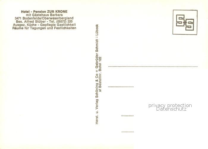 73543701 Bodenfelde Hotel Pension Zur Krone Gaestehaus Barbara Uferpartie an der Weser postalisch nicht gelaufen Erhaltung siehe scans [FriedD77] KatCode: 11110003155002