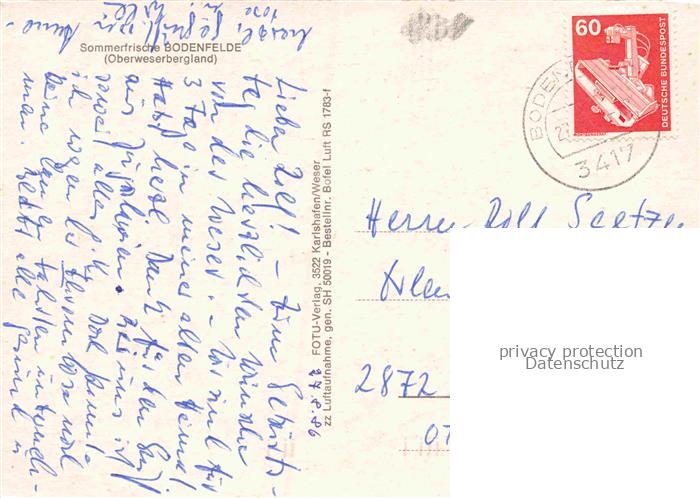 34145186 alte Postkarte Bodenfelde Weser Niedersachsen Fliegeraufnahme postalisch gelaufen Erhaltung siehe scans [WerneD78] KatCode: 11110003155002