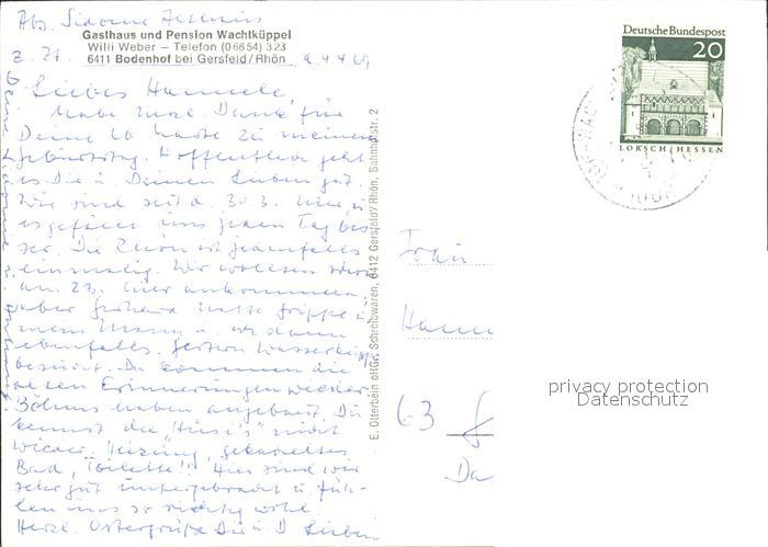 72096490 alte Postkarte Bodenhof Gersfeld Gasthaus Pension Wachtkueppel postalisch gelaufen Erhaltung siehe scans KatCode: 11110006631010