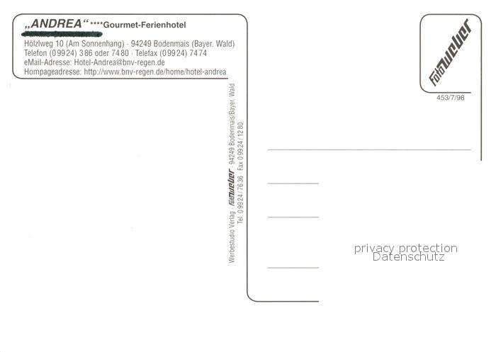73203502 Bodenmais Andrea Gourmet Ferienhotel Hallenbad Landschaftspanorama Bayerischer Wald postalisch nicht gelaufen Erhaltung siehe scans [FriedD77] KatCode: 11110009276117
