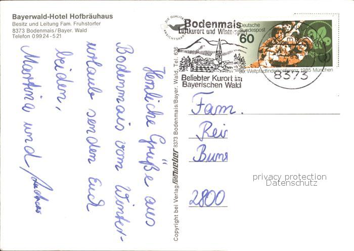 72066377 alte Postkarte Bodenmais Bayerwald Hotel Hofbraeuhaus postalisch gelaufen Erhaltung siehe scans KatCode: 11110009276117